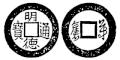 During the reign of the Đồng Khánh Emperor two series of Đồng Khánh Thông Bảo cash coins were minted;[48] the first series were cast in 1776 with a diameter of 26 millimeters, and the second series in 1887 with a diameter of 23 millimeters.[48] All cash coins from this era had blank reverse sides.[48]