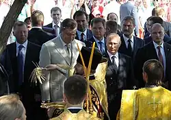 Patriarch Kirill of Moscow and All Rus at Yanukovych's invitation conducted a public prayer service at Kyiv Pechersk Lavra before Yanukovych's presidential inauguration.[81] Kirill also attended the inauguration along with High Representative of the Union for Foreign Affairs and Security Policy Catherine Ashton, United States National Security Advisor James Jones and speaker of the Russian parliament Boris Gryzlov.[82][83]