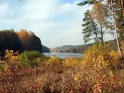 Vilnius district municipality is situated in the territory once settled by the Baltic East Lithuanian Barrow Culture (c. 3/4th–11/12th century AD), and numerous archaeological sites from this period are situated within its borders. During the formation of the Grand Duchy of Lithuania, the major part of what is now Vilnius district municipality was the nucleus of the Duchy of Lithuania, while the territory to the north of Maišiagala belonged to the Neris Land. There is some evidence that Bukiškis just north of Vilnius whose historic name was Gedvydžiai could be associated with Duke Gedvydas and through this link – with Mindaugas.[4] According to Jan Długosz, the pagan ruler of Lithuania Algirdas was cremated in the sacred forest of Kukaveitis near Maišiagala after his death in Maišiagala castle in 1377.[5] Nemenčinė (1338), Maišiagala (1254, 1365) and Medininkai (1387), known from written sources from the 13th-14th centuries, were among the oldest settlements in Lithuania. These were trade and defense centers with castles as well as religious centers – after the Christianization of Lithuania, early churches were built here. As Vilnius was the capital of the Grand Duchy of Lithuania, the territory around the city was forming the very center of the state, so-called Lithuania proper. It was the major part of a much larger Vilnius Duchy and later – Vilnius Voivodeship. After the partitions of the Polish-Lithuanian Commonwealth, Vilna Governorate was formed and Vilensky Uyezd occupied all of what is now Vilnius district municipality. When Vilnius and its suburbs in 1923 were incorporated into Interwar Poland, what is now Vilnius district municipality was the core of Wilno-Troki County. After World War II, Vilnius district municipality was formed. The initially small Vilnius district (938 km2) was soon significantly enlarged, absorbing Naujoji Vilnia district (in 1959) and Nemenčinė district (in 1962) and parts of Ukmergė district, but transferring some smaller administrative territories to Molėtai district and Švenčionys district, including Pabradė (in 1962). After 1962 (then 2313 km2), there were only minor administrative reforms, attaching some territories from Vilnius district municipality (now 2129 km2) to Vilnius city. In March 1987, the villages of Pašilaičiai, Fabijoniškės, Kelmija, Raisteliai and parts of the villages of Pavilionys, Baltoji Vokė, Prašiškės, Bajorai, Buivydiškės, Grigaičiai and Vanaginė were attached to Vilnius city.[6] Almost all of the municipality belongs to the Vilnius urban belt, forming suburban environs of the capital city.[7]