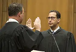 On July 25, 2013, President Barack Obama nominated Chhabria to serve as a United States district judge of the United States District Court for the Northern District of California, to the seat vacated by Judge Susan Illston, who assumed senior status on July 1, 2013.[5] On January 16, 2014, his nomination was reported out of committee by a 13–5 vote.[7] On March 5, 2014, the United States Senate invoked cloture on his nomination by a 57–43 vote.[8] His nomination was confirmed later that day by a 58–41 vote.[9] He received his judicial commission on March 7, 2014.[6][3][10] Chhabria was the first Indian-American judge to be appointed in California.[11][12]