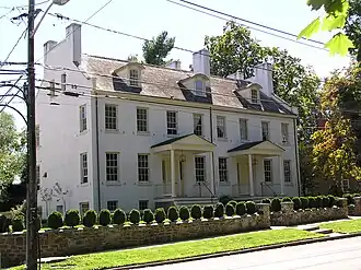 The Vincentown Historic District is a 92-acre (37 ha) historic district roughly bounded by Mill, Church, Pleasant, Main, and Race Streets, and Red Lion Road encompassing the community. It was added to the National Register of Historic Places on September 21, 1988 for its significance in architecture, commerce, industry, religion, and social history. The district includes 160 contributing buildings and 3 contributing sites.[15] The John Woolston House, a 2+12-story brick house with Federal style, was previously documented by the Historic American Buildings Survey in 1938.[16] The house at 57 Main Street is a three-story Italianate style house featuring a cupola with a tree-type finial. It was built c. 1865 and is a key contributing property.[15]