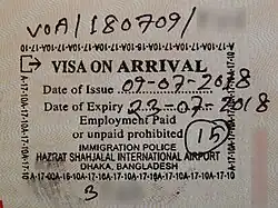 - ^ "Visa Policy of Bangladesh: Visa on Arrival". Bangladesh Embassy in the United States. Retrieved 30 July 2024.
