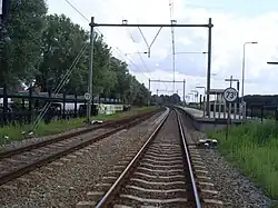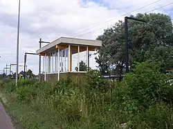 The station was opened in 1986 and is a typical suburban station. There are two platforms, which do not lie opposite each other, but located on either side of the level crossing. On the eastern platform there was originally a station building with waiting area and ticket office; a standard design of architect Hans Bak. In 2007 the building was demolished; the staffed ticket office had closed four years earlier. It has broadened the platform on the site of the former building.