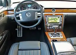 The interior benefited from some new technologies, but retained the 2009 MY layout. The Phaeton was offered in two wheelbase lengths (standard and long) and two seating layouts (standard five seats and optional four seats with full centre console). In the five-seat version, the front seats can be adjusted 12 ways. Standard features include all wheel drive, air suspension, and four zone automatic climate control. A multifunction steering wheel can be ordered in leather or wood leather.