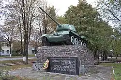 There was significant fighting in the area around Volnovakha during August and September 1943.[9] Eventually, Volnovakha was liberated by the Red Army on 10 September 1943, after fierce fighting on the Kalmius river. The Nazis destroyed much of the city behind them during their retreat.[7] Several units were given honorary titles after the battle in the city.[10][9] The city's infrastructure was slowly rebuilt in the post-war period.[7]