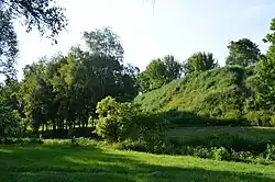 A series of mass graves were discovered in 1997, with exhumations completed by 2013. Originally thought to be an example of NKVD mass murder, similar to the Katyn massacre and the Vinnytsia massacre,[18] the Volodymyr-Volynskyi murders were shown in 2012 to have been carried out by German forces, most likely the Einsatzgruppen C.[19] The primary archeological evidence for German culpability was that most of the bullet shell casings were dated 1941 and were from a German factory. Testimony by a Jewish survivor of the city, Ann Kazimirski (née Ressels),[20][21] who lived on Kovelska Street, recorded by the USC Shoah Foundation corroborated the view that the perpetrators were German and that the victims were primarily Jewish.[22] Anthropological analysis of the remains led to the conclusion that three quarters of the victims were women and children. The 747 victims were reinterred in local city cemeteries.[23]