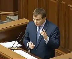 Volodymyr Vasylyovych Demchyshyn (Ukrainian: Володимир Васильович Демчишин; born 12 November 1974) is a Ukrainian former banker and politician, who served as Minister of Energy and Coal Industry of Ukraine from 2014 to 2016 in the second Yatsenyuk Government.[2][3][1]