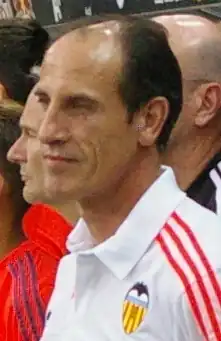 Voro was appointed interim manager of Valencia on 30 November 2015 following the departure of Nuno Espírito Santo,[12] before the position was filled by Gary Neville two days later.[13] He led the side to a 1–1 draw against FC Barcelona at the Mestalla Stadium, in his only game in charge.[14]