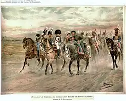 During the French invasion of Russia in 1812, there was a battle between the retreating French army (up to 37,000 troops) and the Russian army (25,000 men) near Vyazma on October 22, 1812. The vanguard of the Russian army under the command of Lieutenant General Mikhail Miloradovich and a Cossack unit of General Matvey Platov (coordinated by Miloradovich) attacked the rearguard corps of Marshal Louis-Nicolas Davout east of Vyazma and cut off his retreat. Owing to the intervention of Eugène de Beauharnais and Józef Poniatowski, Davout managed to break through the Russian army's encirclement.