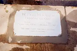 McClure was killed by guerillas on March 27, 1977, in Gode, Ethiopia. With his son, Don Jr., he had flown to the Gode station five days earlier to make final arrangements to turn the station over to World Vision.[13] Lyda McClure was also scheduled to go with them, but was pulled from the flight because of a high priority passenger. The SIM missionaries in K'elafo had been held hostage and then evacuated, landing in Gode long enough to recount their harrowing experiences. Don requested that Lyda charter a plane to fly them out, although that flight would not occur until the weekend.[14] About 1:30 Sunday morning, Don Jr. heard noises from his father's bedroom. When he investigated, he found the house surrounded by armed men. Graeme Smith (World Vision) heard the noises from a nearby house and came over to investigate. Smith and the two McClures were taken out into the yard. After the houses were looted, the command was given to shoot. A blast of gunfire killed Don Sr., but Smith and Don Jr. were spared. The guerillas who had rounded up the rest of the Smith family, two World Vision nurses and two German technicians were confused by the gunfire and ran away.[15] Don Sr. was buried in Gode, Ethiopia at 10 a.m. March 28, 1977. In the summer of 2000, Don McClure's grandson, Jonathan Partee (son of Margaret Jean), returned to Gode to find the simple metal cross bearing McClure's name had been removed. In 2001, a new marker was placed on the gravesite which reads: