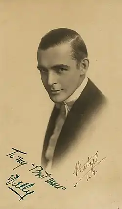 This is a comprehensive listing of Wallace Reid's (1891–1923) silent film output. Reid often played a clean-cut, well-groomed American go-getter on screen, which is how he is best remembered, but he could alternate with character roles, especially in his early short films, most of which are now lost. Some films have him as a director, some have him as an actor and some have him as both in particular his numerous short films. His first feature film is the famous appearance as a young blacksmith in The Birth of a Nation in 1915.[1]