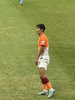 Although born in South Korea, Wang Chien-ming was eligible to play for Chinese Taipei through his grandfather.[9] He would be selected for the squad for the 2019 AFC Asian Cup qualification – third round match against Singapore on 27 March 2018, however he could not play because there was still confusion about his grandfather who had a Republic of China passport rather than the newly named and relocated Taiwan passport.[10] He would be eventually allowed to represent Chinese Taipei and would make his debut on 1 June 2018 against India in the 2018 Intercontinental Cup in match that ended in a 5–0 defeat.[11]
