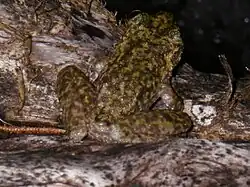 The waterfall frog is one of the four species of Australian torrent treefrogs that comprise the Ranoidea nannotis species group. The other species are the mountain mist frog, common mist frog, and the armoured mist frog.[1]