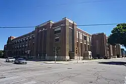 The first high school in Wauwatosa opened at the site of the current Wauwatosa East building in 1871.[3] Originally known as Wauwatosa High School, the school's name was changed to Wauwatosa East High School in September, 1961 after a rival high school was built on the west side of the city. The older half of the current structure started being built in 1928, construction resumed in 1930 for it to be completed in 1931. The auditorium and original gymnasium were then completed in 1940. An underground tunnel was built to connect the high school to a middle school across the street, the middle school was built in 1906 but it originally served as Wauwatosa High until 1931. The tunnel allowed students of wauwatosa high to go to the middle school across the street to use it for activities, the tunnel was decommissioned in 1958 when the middle school was torn down to be replaced with an addition for Lincoln Elementary.