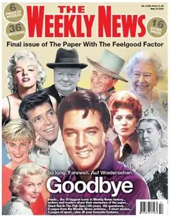 The Weekly News was a British national newspaper founded in 1855 and published every Wednesday[1] by the Dundee newspaper chain DC Thomson.[2] Billed as "the paper with the feelgood factor," it contained news and features on a broad range of subjects in six colour-coded sections: That's Real Life, Entertainment, Lifestyle, Puzzles, Short Stories and Sport.