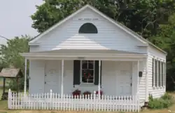 The Toll House located on the property of the Walker, Combs, Hartshorne, Oakley Farmstead is one of only two remaining toll houses in New Jersey.[19] Built in ca. 1850, it was owned and operated by a group of farmers living along the Burlington Path. The toll separated two sides of the two-lane stagecoach route: the side heading southwest towards Smithburg, known as the Freehold-Smithburg Turnpike, and the side heading northeast towards "Elk's Point" (what is now Freehold Borough).[19]