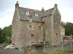 Crosbie Castle (also known as Crosbie Towers) lies to the north east on the outskirts of West Kilbride. It was largely rebuilt from a tower demolished in the 17th century which was the home of Sir Ranald Craufurd (uncle of William Wallace) in the 13th century,[16] and it is said that Wallace himself spent some time at Crosbie.[16] Currently the castle lies at the centre of a caravan park also called Crosbie Towers. Having lain empty for a number of years due to internal fire damage, part of the building was demolished in early 2007 after heavy storms damaged the external walls of the castle.[17] Although the building is a Category-B listed building, permission was not sought before demolition.[17]