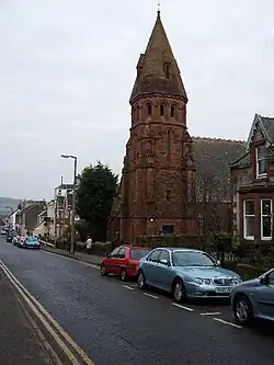 Overton Church, also belonging to the Church of Scotland, is located at the top of Ritchie Street. It is a red sandstone building with a working bell tower. Overton Church website