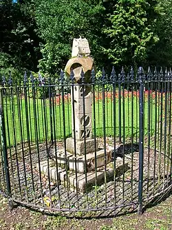 West Kilbride is generally believed to be named after the ancient Celtic Saint Brigid of Kildare, often known as St Bride.[6] The name suggests there was once a cell or kil to Brigid in the area, although local legend has her visit to establish her church around 500 AD (the landing point was supposedly in front of the now Seamill Hydro). The "West" prefix was added in the early 18th century[7] to distinguish between another Kilbride in South Lanarkshire.[8] There has been a hamlet in the area since 82 AD when the Roman general Agricola stationed 30,000 troops in the area of the village now known as Gateside. Roman roads can still be explored around the village to this day, and many Roman finds have been reported and lodged in Museums throughout Scotland. William Wallace's uncle Crauford had an estate at Corsbie in the North of the village, and this is still in use as a caravan park called Crosby, to this day (Wallace's mother's family). In later years Robert the Bruce gave a grant of the lands of the Barony of Kilbride to the Boyds of Kilmarnock.[9] It was once home to various mills and other works,[10] and in the 18th century West Kilbride was primarily a weaving village.