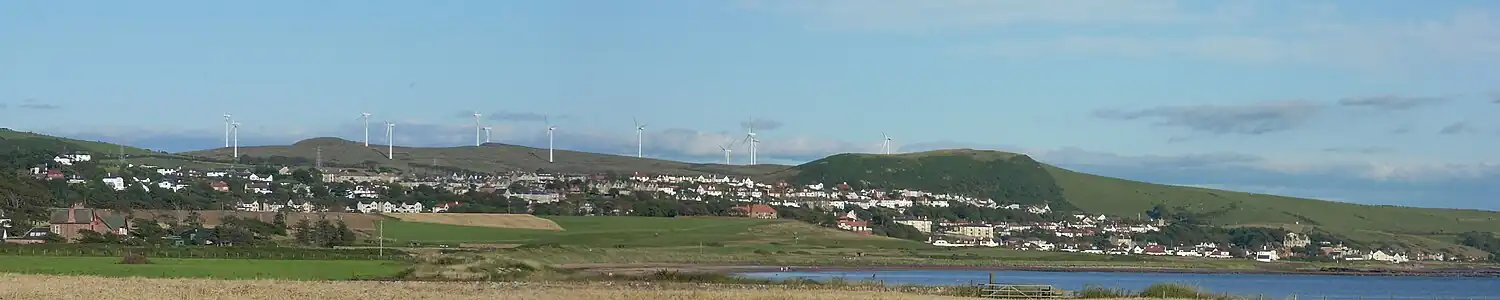 A view of the twelve wind turbines above West Kilbride and Seamill