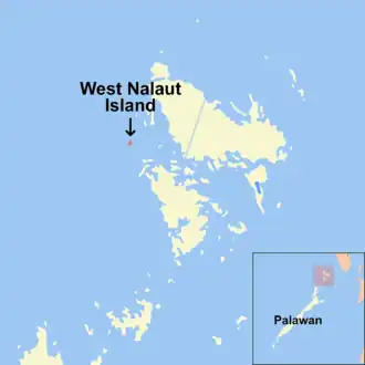 West Nalaut Island is an island in northern Palawan, in the Philippines.[1] It is the westernmost of the Calamian Islands, and can form a guide to shipping entering the Coron West Passage.[2] It is approximately 16 kilometres (9.9 mi) off the western coast of Busuanga Island, which is approximately a 40-minute flight from Manila. The uninhabited 47.9-hectare (0.479 km2) island is privately owned. It was attempted to be sold as part of the HGTV show "Island Hunters".