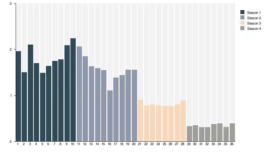 169. ^ For the first season, see "Westworld: Season One Ratings". TV Series Finale. December 6, 2018. Archived from the original on August 21, 2020. Retrieved June 12, 2018.