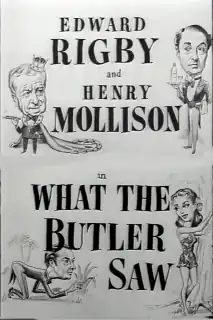 What the Butler Saw is a 1950 British second feature ('B')[2] comedy film directed by Godfrey Grayson and starring Edward Rigby, Henry Mollison and Mercy Haystead.[3][4] The screenplay was by A.R. Rawlinson and E.J. Mason, from an original story by Roger and Donald Good. It was made by Hammer Films.[5] Production began on Jan. 9, 1950. It was trade shown on June 22, 1950 at the Rialto, and was released in September 1950. The film did not do well at the box office, and, although once considered a lost film,[6] it is now freely available on the internet and has been shown in the UK by Talking Pictures TV.