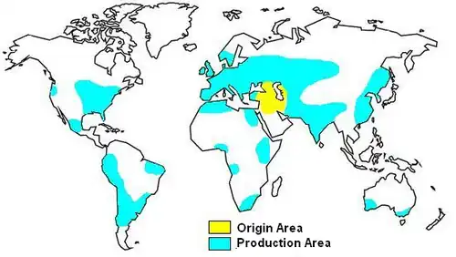 Common wheat or bread wheat (T. aestivum) | The most widely cultivated species in the world.[70] |