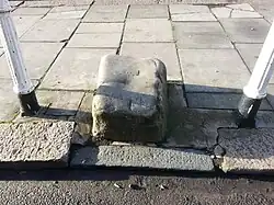 He also states that the earliest evidence for the existence of the stone is a photograph taken in 1861 which shows it much closer to The Griffin than it is now. The stone was moved to its present location when the toll gate was removed in 1863.[2]