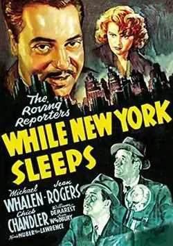 While New York Sleeps is a 1938 American crime film directed by H. Bruce Humberstone and written by Frances Hyland and Albert Ray. The film stars Michael Whalen, Jean Rogers, Chick Chandler, Robert Kellard, Joan Woodbury, Harold Huber and Marc Lawrence. The film was released on January 6, 1939, by 20th Century Fox.[1][2][3]