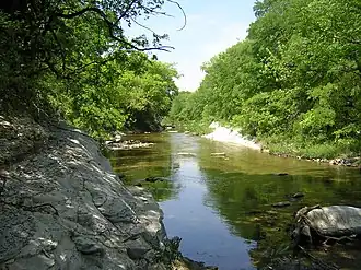 The creek (and the lake it feeds) takes its name from the weathered-white Austin Chalk which lines its bed and banks, thus revealing its place geologically within the Balcones Escarpment. In some places, this chalk becomes quite conspicuous as the creek cuts deep through canyon-like walls of rock and tree roots. Considered part of the Texas Blackland Prairie (locally White Rock Prairie) and Bottomland Forest ecosystems, the creek is host to multitudes of flora and fauna.