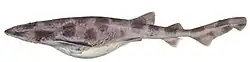 The whitefin swellshark (Cephaloscyllium albipinnum) is a species of catshark, belonging to the family Scyliorhinidae, endemic to southeastern Australia. It is found 126–554 m (413–1,818 ft) down, on the outer continental shelf and upper continental slope. Reaching 1.1 m (3.6 ft) in length, this shark has a very thick body and a short, broad, flattened head with a large mouth. It is characterized by a dorsal color pattern of dark saddles and blotches over a brown to gray background, and light fin margins. When threatened the whitefin swellshark can inflate itself with water or air to increase its size.[2] Reproduction is oviparous. As of 2019 The International Union for Conservation of Nature (IUCN) has assessed this species as Critically Endangered due to the significant decline of the population.
