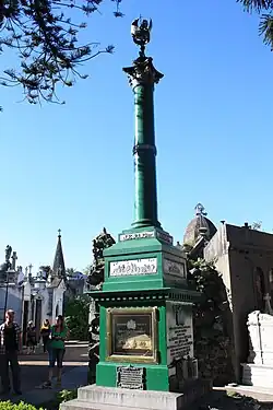 On 3 March 1857, he died and was buried with full military honours. The Argentine government issued a comuniqué: "With a life of permanent service to the national wars that our homeland has fought since its independence, William Brown symbolized the naval glory of the Argentine Republic".[18] During his burial, General Bartolomé Mitre famously said: "Brown in his lifetime, standing on the quarterdeck of his ship, was worth a fleet to us".[19] His grave is currently located in the Recoleta cemetery in Buenos Aires.[20]