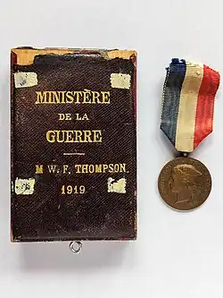 The presentation case and Medal of Honor awarded to William Fawcett Thompson by the French military for his service in WWI.