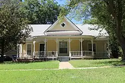 Built in 1903 by William Frick, owner of Stillwater's first feed store, the Frick House is one of the best remaining examples of turn of the century Victorian style cottages.[2] It is a single-story cottage. Carpenter gothic trim and octagon cut fish-scale shingles decorate the gables. A curving porch extends the width of the front of the house. The porch is enhanced with turned posts, with supporting brackets, turned railing posts and spindle bands under the eaves. Asbestos shingles have been added to the roof, which is decorated with a dormer with small ventilating window. The woodwork of the window is cut in a quatrefoil pattern and the peak of the dormer is decorated with additional scrollwork.