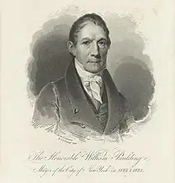 William Paulding Jr. (March 7, 1770 – February 11, 1854) was a United States Representative from New York and the 56th and 58th Mayor of New York City. He was the Adjutant General of New York for two non-consecutive terms.