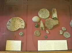 Smith worked at one of the estate's older mines, the Mearns Pit at High Littleton, part of the Somerset coalfield and the Somerset Coal Canal.[6] As he observed the rock layers (or strata) at the pit, he realised that they were arranged in a predictable pattern and that the various strata could always be found in the same relative positions. Additionally, each particular stratum could be identified by the fossils it contained, and the same succession of fossil groups from older to younger rocks could be found in many parts of England. Furthermore, he noticed an easterly dip of the beds of rock—low near the surface (about three degrees), then higher after the Triassic rocks. This gave Smith a testable hypothesis, which he termed The Principle of Faunal Succession, and he began his search to determine if the relationships between the strata and their characteristics were consistent throughout the country.[7] During subsequent travels, first as a surveyor (appointed by noted engineer John Rennie) for the canal company until 1799 when he was dismissed, and later, he was continually taking samples and mapping the locations of the various strata, and displaying the vertical extent of the strata, and drawing cross-sections and tables of what he saw. This would earn him the name "Strata Smith".[8] As a natural consequence, Smith amassed a large and valuable collection of fossils of the strata he had examined himself from exposures in canals, road and railway cuttings, quarries and escarpments across the country. He also developed methods for the identification of deposits of Fuller's earth to the south of Bath, Somerset.[9]
