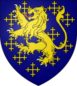 Arms attributed to William de Breouse in the Camden Roll, ca 1280, blazoned there as "de azur od un leun rampant de or crusile d'or"