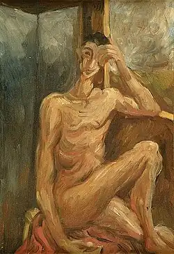 An antique dealer introduced him to the portrait painter Edmund Pick-Morino. Pick-Morino found Kibel a patron, a rich banker, and allowed him to draw and paint his models, some of whom were society ladies, wearing masks. He appears to have come into contact with the work of Oskar Kokoschka.[1] However, his impoverished existence soon wore on him and, since he could not travel to Paris without papers, he was persuaded by Pick-Morino to go to Palestine.[2]