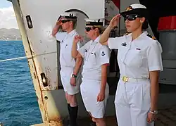 Women have formed part of ADF deployments around the world since the early 1990s. Female sailors were sent into a combat zone for the first time on board HMAS Westralia in 1991, female medical personnel were deployed to Iraq, Western Sahara and Rwanda during the early 1990s and 440 of the 5,500 Australians deployed to East Timor in November 1999 were women.[19] Women also began to be promoted to command units in the late 1990s, and Air Commodore Julie Hammer became the first woman to reach one-star rank in 2000.[20]