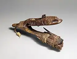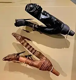 A wooden halibut hook is a type of fish hook, historically used by the indigenous peoples of the Pacific Northwest Coast to catch Pacific halibut. In addition to their utilitarian function, wooden halibut hooks have artistic value, and spiritual significance to the cultures that traditionally used them. Rarely used for fishing in the late 20th century, and appreciated more as art objects, they are undergoing a comeback for subsistence fishing in the early 21st century, and have several benefits in day to day use.
