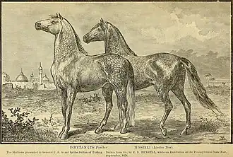 By March the Grants visited Constantinople and Greece, transported there by the sloop USS Vandalia. During his visit with Sultan Abdul Hamid II, Grant was very impressed with his stable of purebred Arabian stallions. Grant commented that the stallions would "pick up their feet like a cat, and so quickly, that no one can scarcely follow their motions". Grant was so impressed with the animals that the flattered Sultan allowed him to pick out any two he desired and take them home, which he did – a "dappled gray" and an "iron gray", which were promptly shipped back to New York. During his visit, Grant was impressed when he learned how thoroughly Ottoman officers had studied the various military campaigns under his command.[50] However, such praise and his gifts did not prevent Grant from criticizing the class and gender divisions he saw. He would later write that he believed the Turkish government treated its people "as slaves" and noting that "they have a form of government that will always repress progress and development."[49]