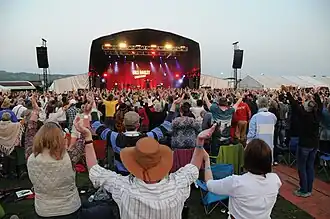 The festival has been described as “Britain’s most popular family festival”,[1] by the Sunday Mirror, and as "an excellent hybrid of The Big Chill, WOMAD and The Cambridge Folk Festival."[2] by Time Out magazine. The festival has also been called a "bijou Glastonbury".[3] and a “safe, fun place to take the family but also rock ‘n’ roll enough for the most hardened of music fans”.[4]