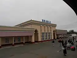 Xojeli, also Khodzheyli (Karakalpak: Xojeli/Хожели, [xoˈʒeli]; Russian: Ходжейли, romanizedKhodzheyli), is a city and seat of Xojeli District in Karakalpakstan in Uzbekistan.[1] It lies 15 km southwest of Nukus, and 25 km northeast of Konye-Urgench (Turkmenistan). Its population is 67,800 (2016).[2] Xojeli has a railway station on the line from Atyrau (western Kazakhstan) to Tashkent.[3]