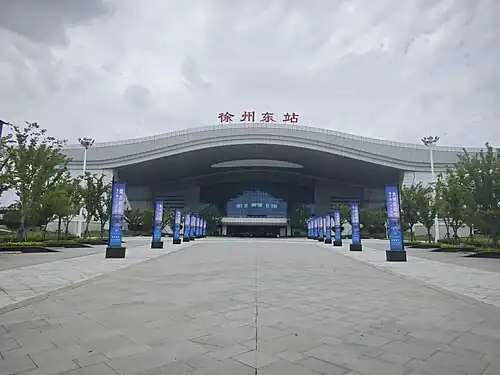 Xuzhou East railway station (Chinese: 徐州东站; pinyin: Xúzhōu dōng zhàn; or Xuzhoudong railway station) is a station dedicated for high-speed railways in Xuzhou, Jiangsu, People's Republic of China. It is served by the Beijing–Shanghai high-speed railway and Xuzhou-Lanzhou high-speed railway (Eurasia Continental Bridge passageway).