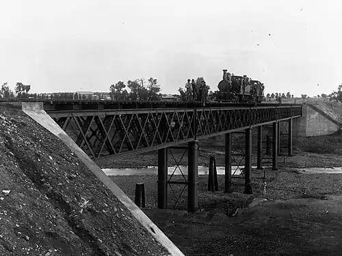 ![]() Load test of the Yacka railway bridge, 1894 | |||||||||||
