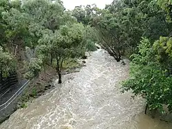 During the 1960s, the river through the Ballarat CBD was re-routed, concreted and built over. As a result, it now forms an underground drain running under Grenville Street. Many other parts of the river also became wide and deep concrete stormwater drains. Several stretches of the river remain, however in its natural bush and parkland setting. Since the 1980s, major initiatives have been undertaken to restore the river's state and vegetation and several natural wetlands have also been re-established along its course.[12] The river suffered flash flooding during the 2010 and the 2011 Victorian floods. A Victorian Government–funded A$1 million clean up of the river over three years was announced in July 2013; yet by May 2014 problems of sewage contamination remained a problem near Ballarat.[13][14]