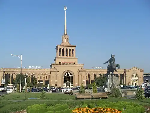 Yerevan railway station (Armenian: Երևան երկաթուղային կայարան, romanized: Yerevan yerkat’ughayin kayaran or simply Կայարան, Kayaran) is the central station of Yerevan, the capital of Armenia, located south of downtown Yerevan, approximately 2.8 km from Republic Square.