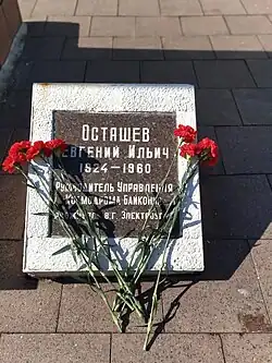 A memorial plaque in the Park, Elektrougli the head of test management Baikonur – Ostaszewo E. I.