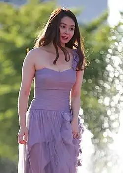 Yoon was a 3rd Dan taekwondo player until middle school, when she ended her sport training due to an injury.[2] She then attended Anyang Arts High School to learn acting.[3] After graduating from Suwon Women's University with a degree in acting, Yoon got her first role in the 2010 theater play Catch him.[4] In the same year, Yoon played the main role in the movie Bad Blood, after she was introduced to the audition by a person who worked with her on the play Catch him.[5] However, the film was not released for two years after filming, during which Yoon struggled to make money while work on various part-time jobs such as serving in a coffee shop to move out of her parents' house who were against her career choice.[6][7] In November 2012, Bad Blood was released and her performance received positive reviews.[8][9] The Seoul Shinmun evaluated her performance, saying, "Yoon's strong acting is impressive as she plays a shocking and complex character in her debut which attracted our attention."[10] Fashion magazine Arena Homme + named Yoon as the 2013 promising rookie actress.[11]